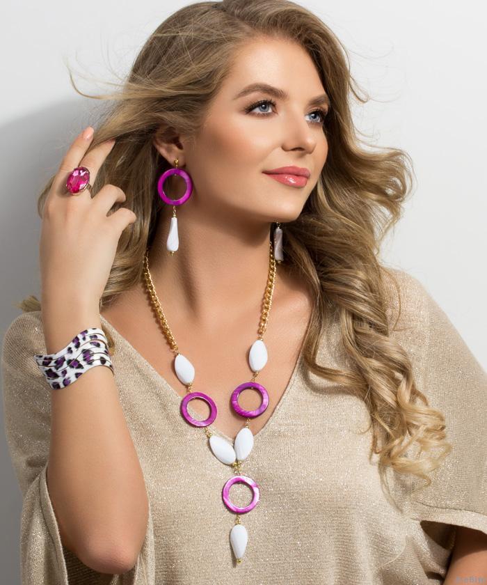 Cercei din ineluşe de sidef roz-bordo şi elemente ondulate albe alungite.