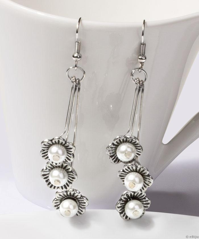 Rețetă bijuterie Cercei floricele argintii cu perle de sticla albe