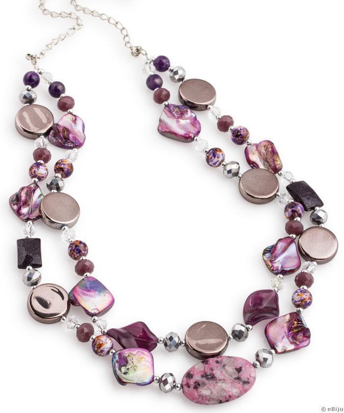 Rețetă bijuterie Colier dublu piatră jasp sesame, cu sidef mov