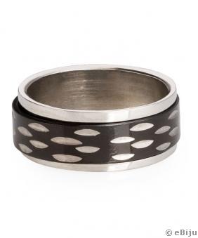 Tigrisszem kő és krémszínű fa karkötő, ezüstszínű díszítő elemekkel