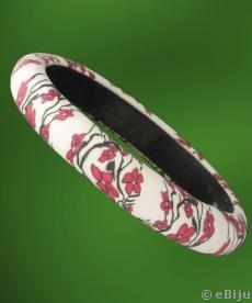 Lila-narancssárga fimó virág karkötő, fa gyöngyökkel