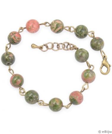 Mărgele unakit, verde-roz, 0.8 cm