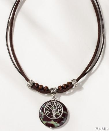 Sidef în formă de bănuţ, cu imprimeu leopard, pete maro pe fundal auriu-verzui, 3 cm.